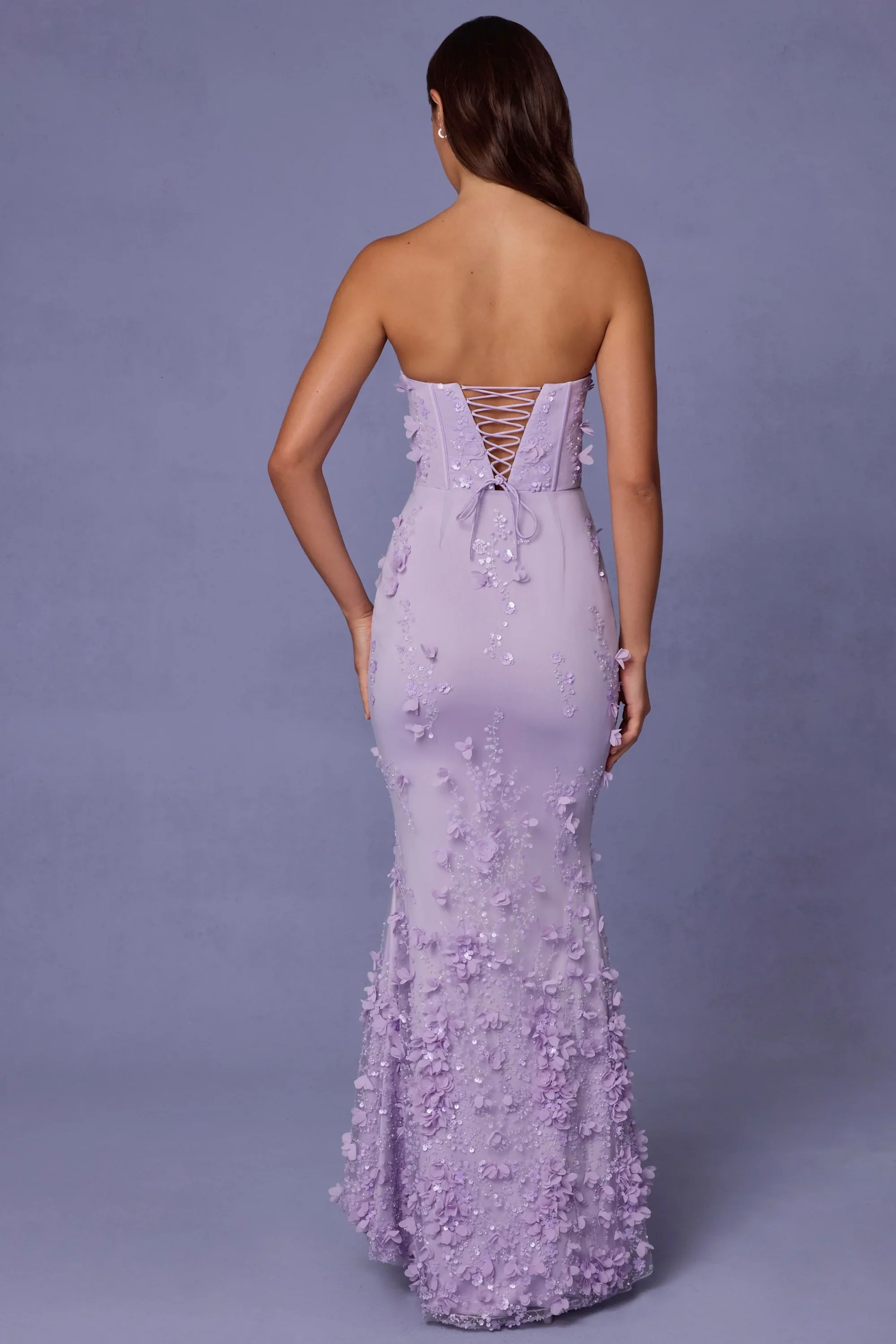 Lace-Up Corset Maxi Dress in Lilac