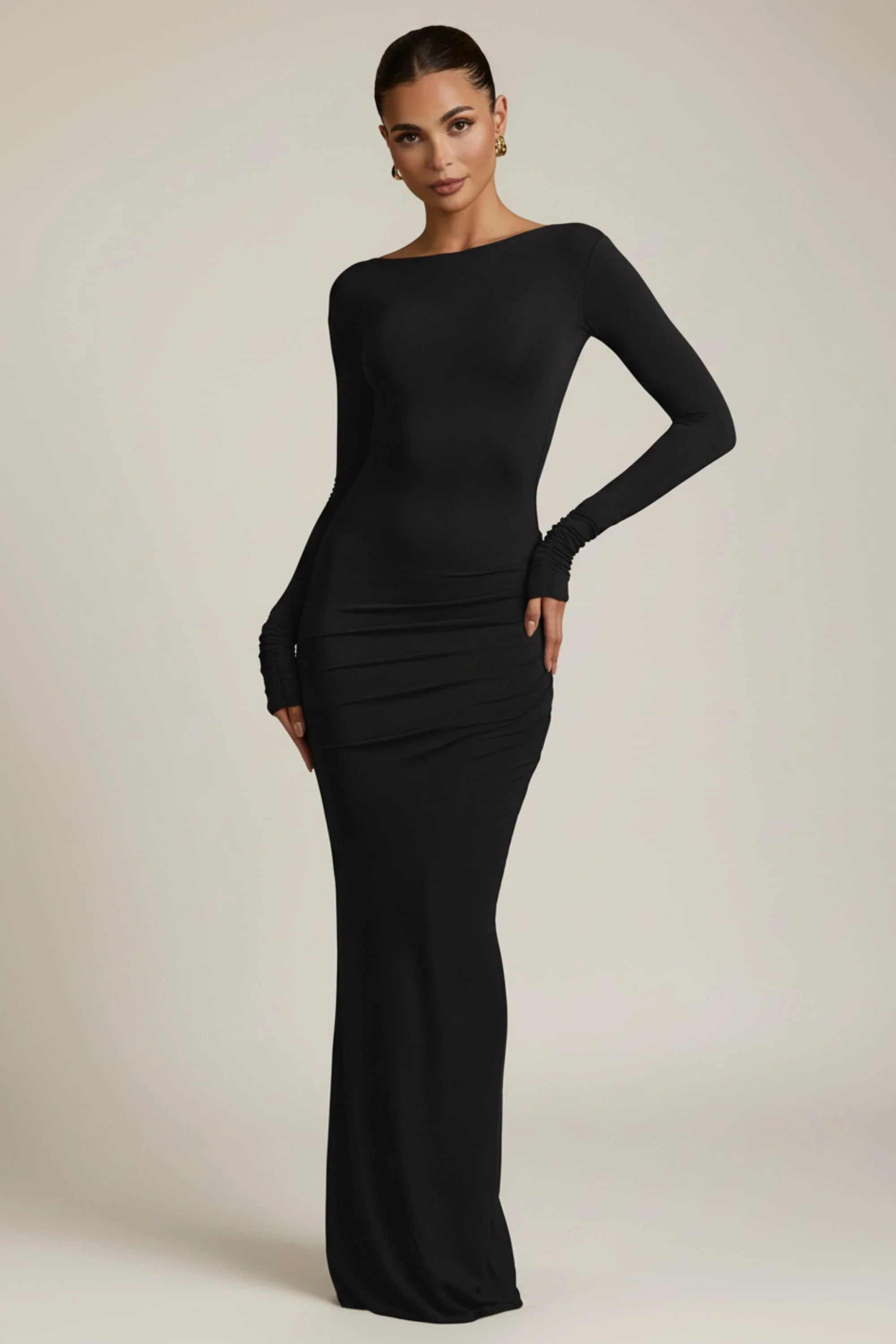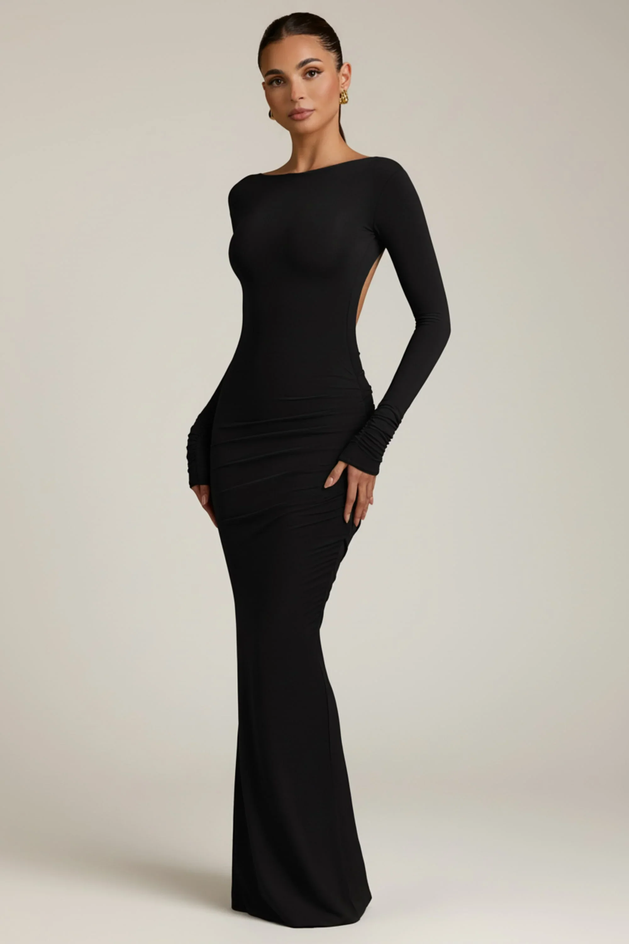 Modal Ruched Backless Maxi Dress in Black
