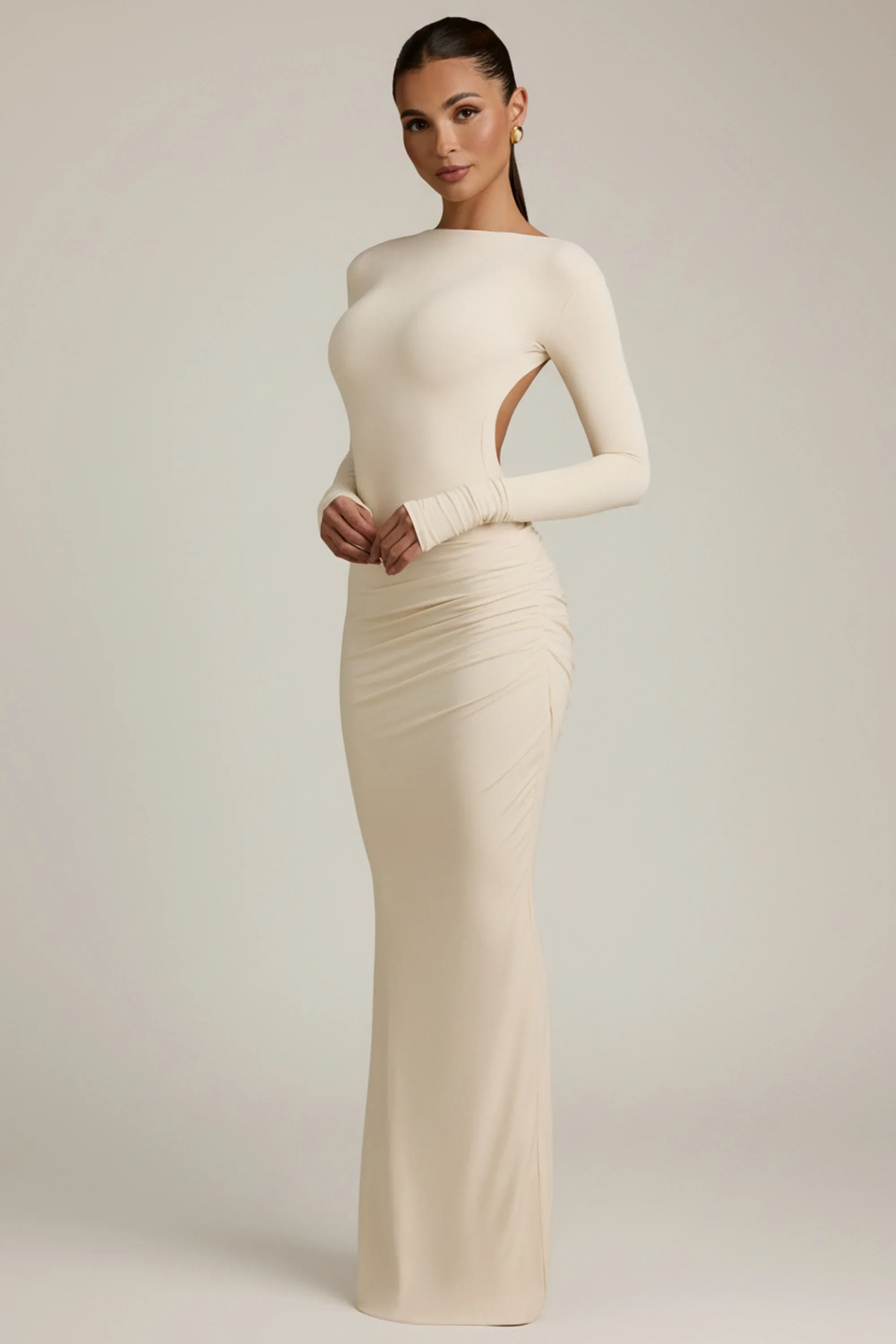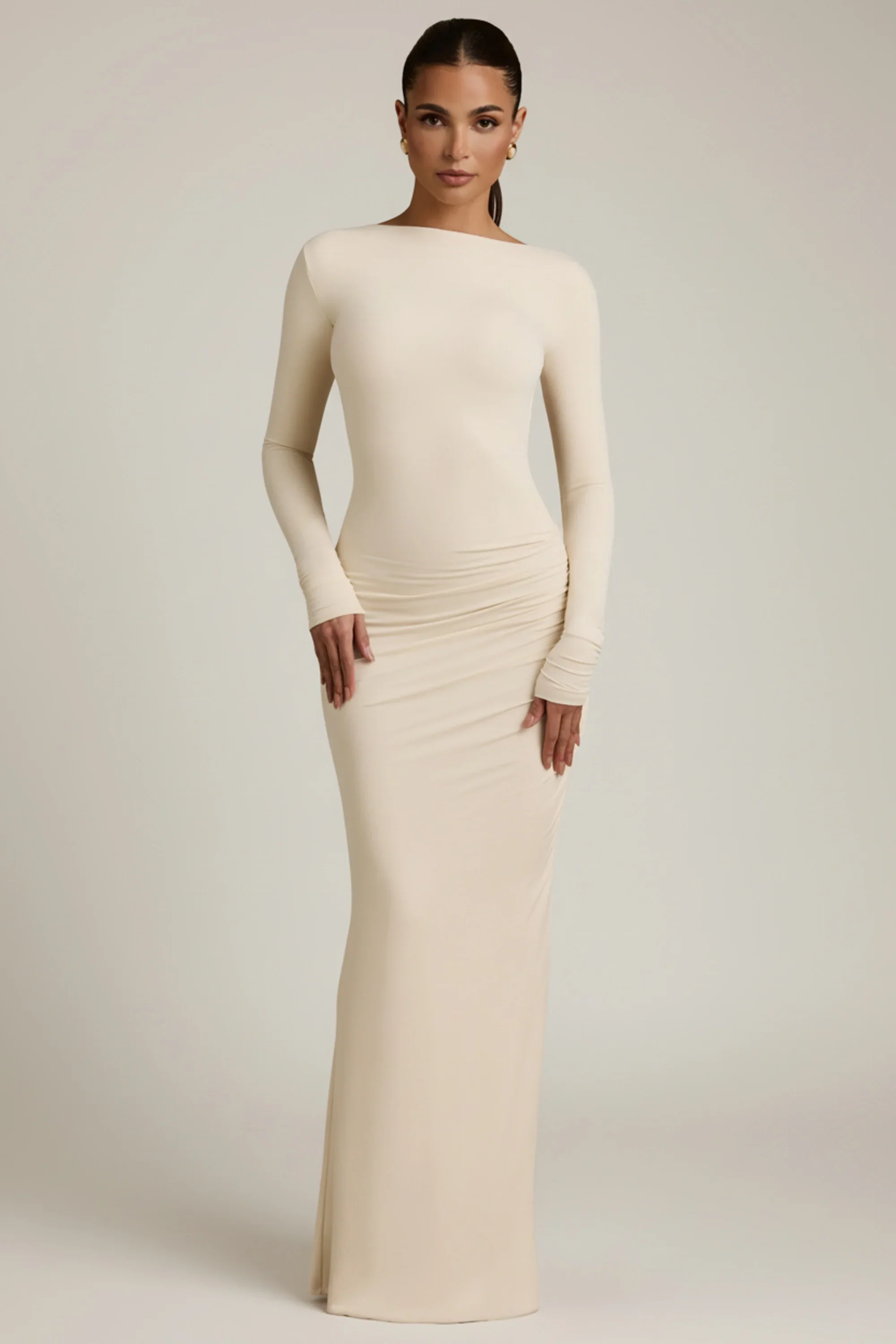 Modal Ruched Backless Maxi Dress in Ivory