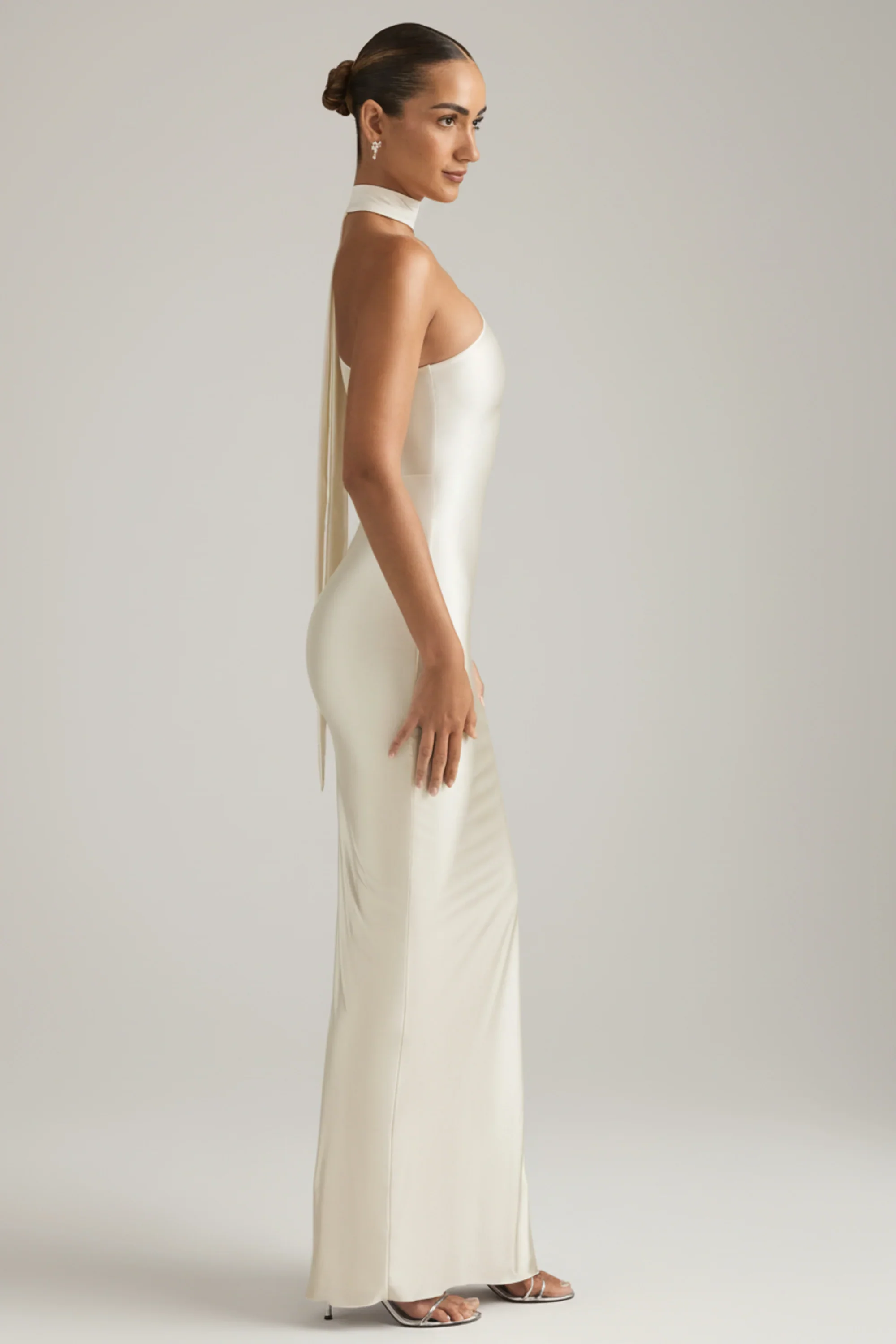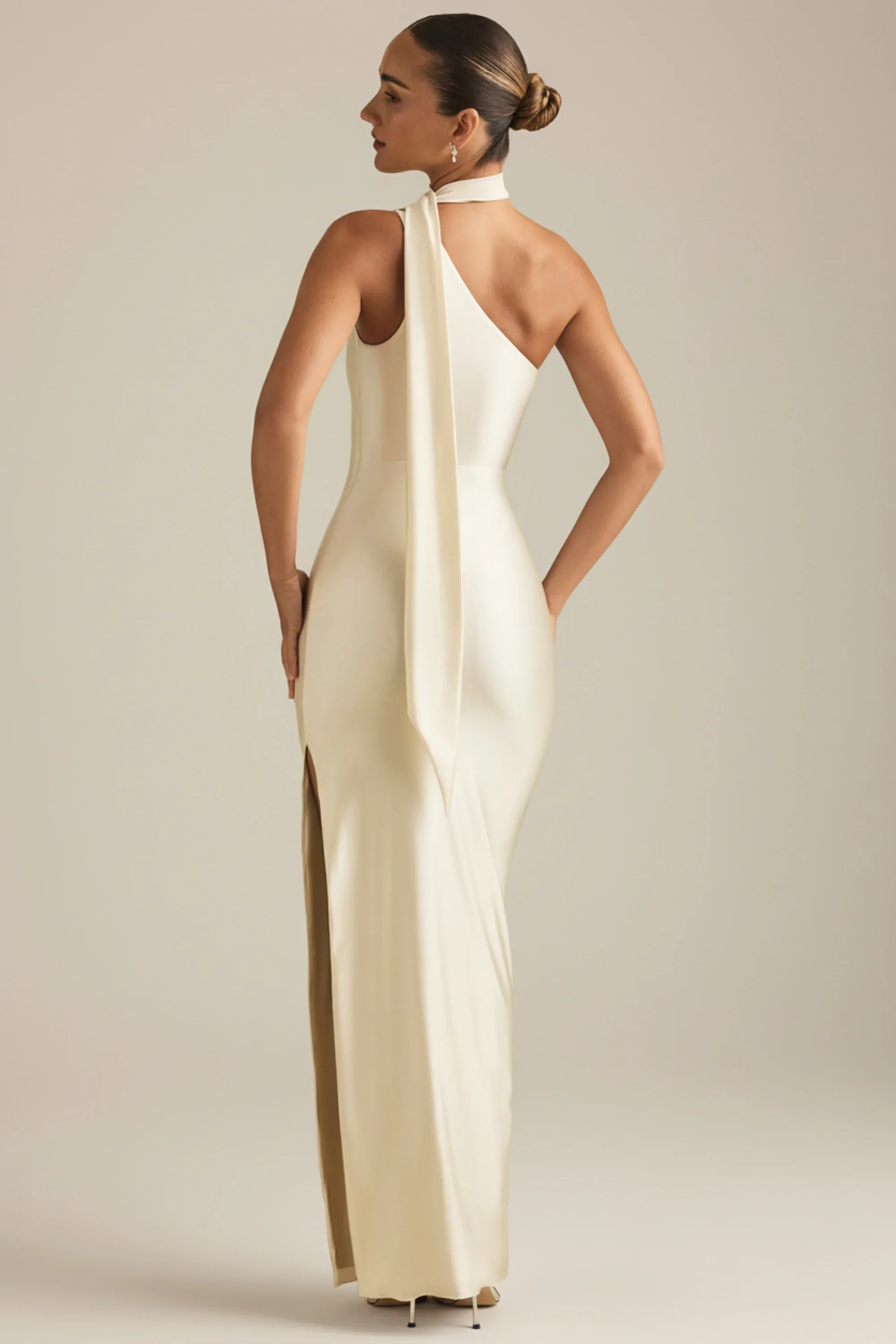 Asymmetric Scarf-Detail Maxi Dress in Ivory