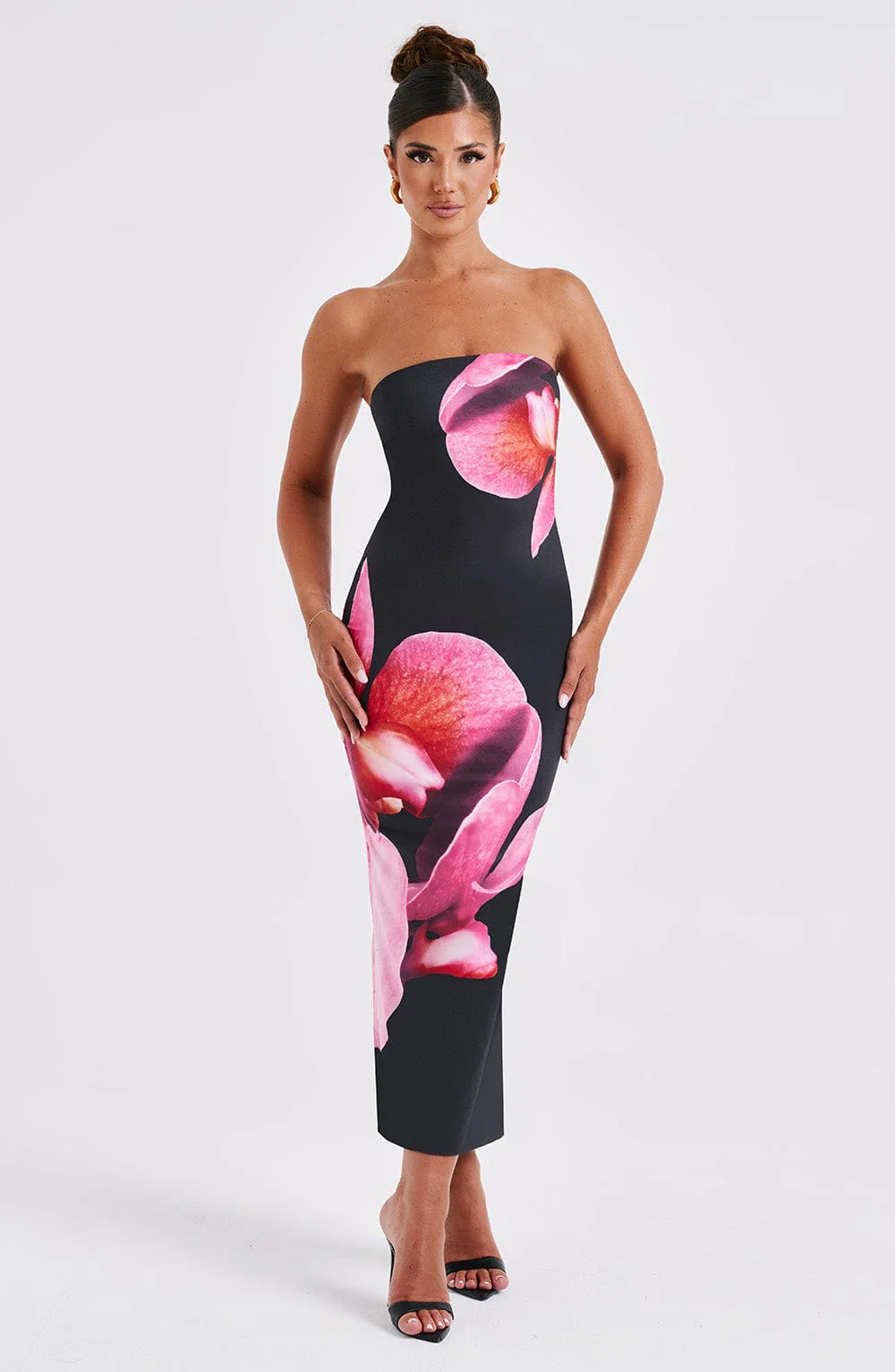 Allegra Midi Dress - Black Floral Print