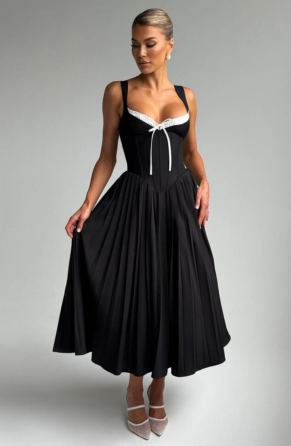 Natassia Midi Dress - Black/White