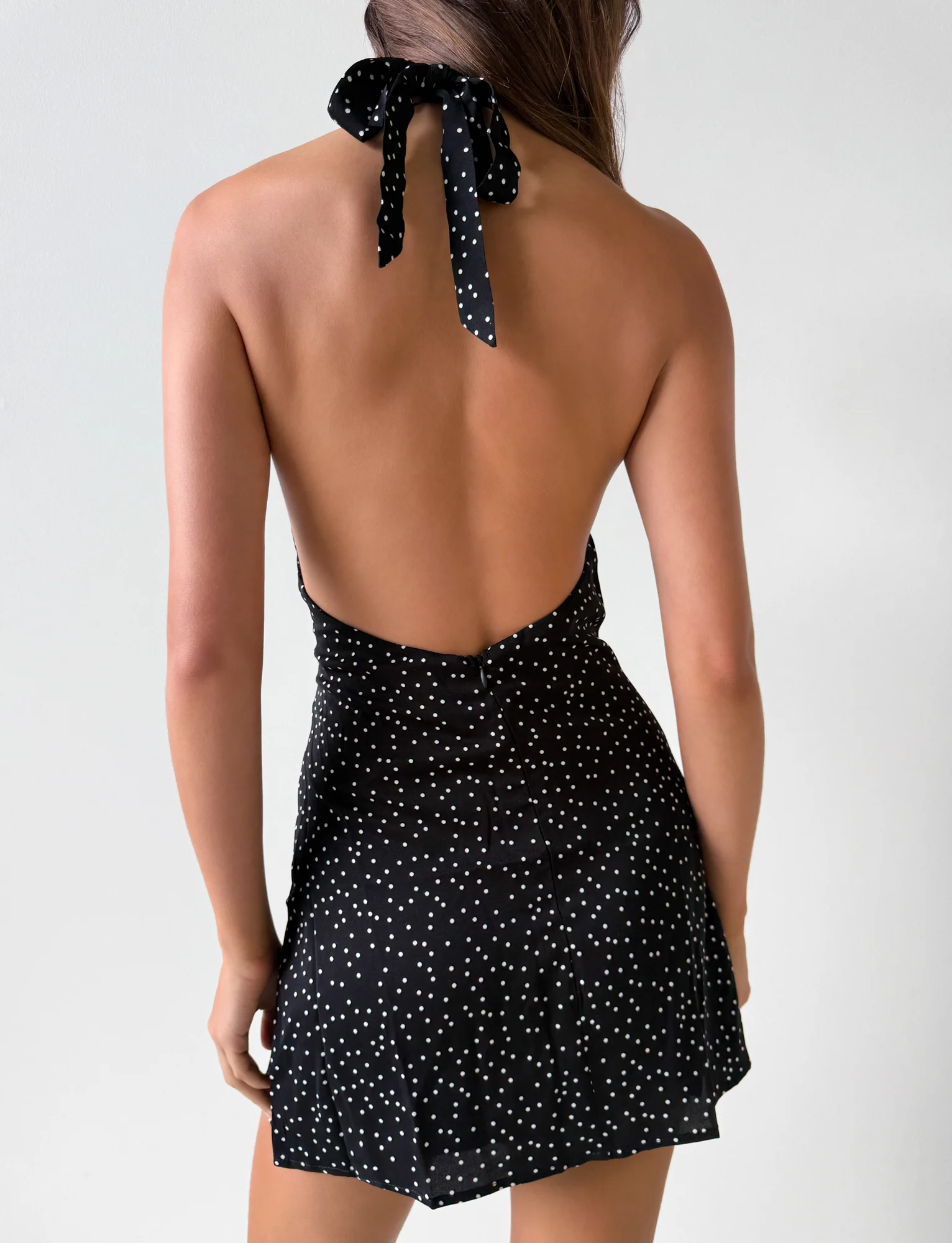 DYLAN HALTER MINI DRESS - BLACK POLKA
