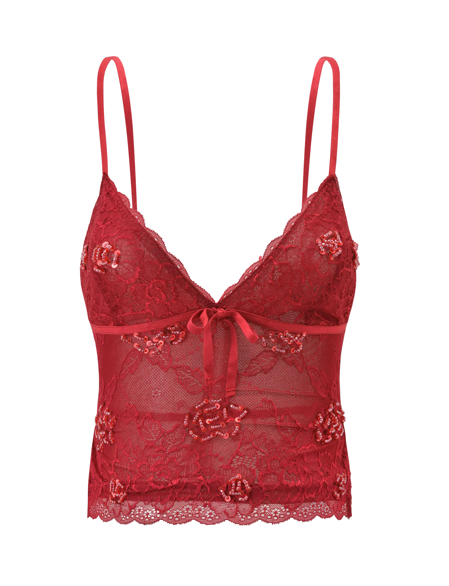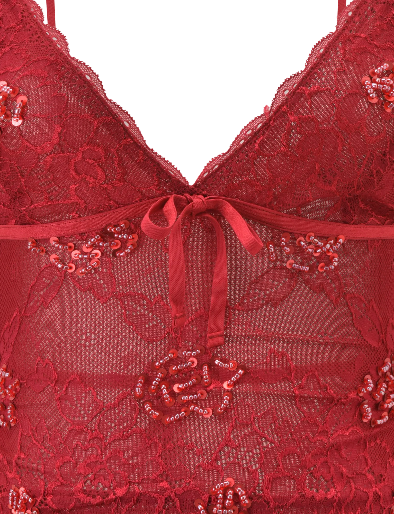 KIRRA BEADED SEQUIN LACE TOP - RED