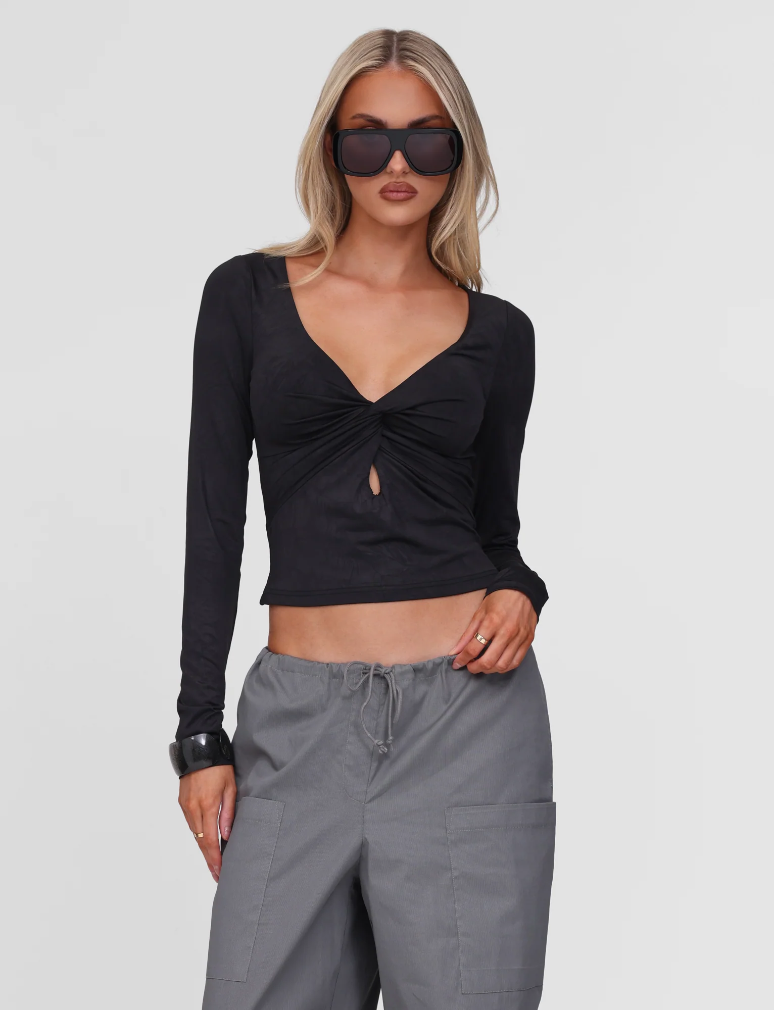 SAFFIRA LONG SLEEVE TOP - BLACK